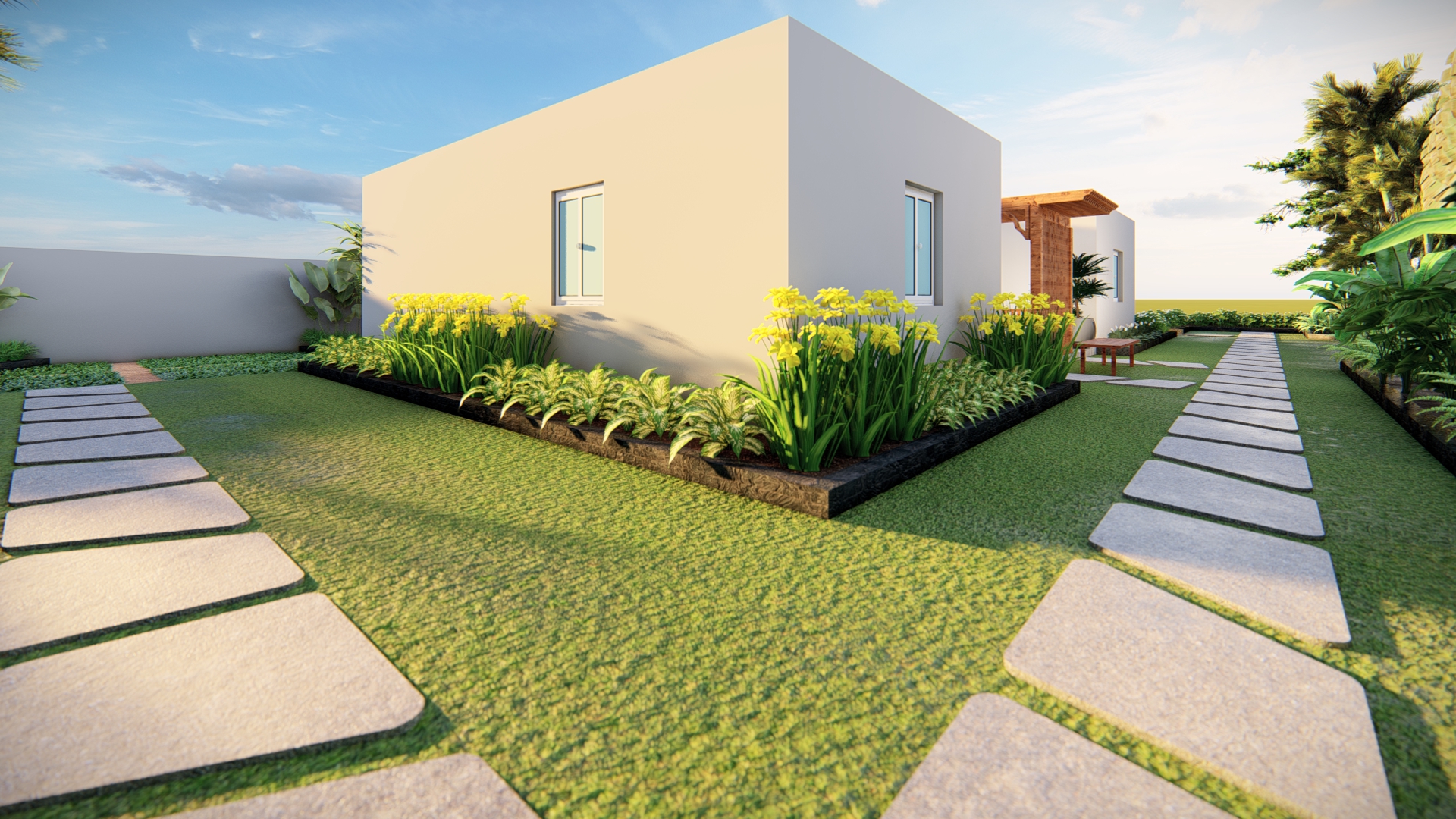 The landscape features vibrant greenery, tranquil pathways, and inviting gathering spaces that encourage outdoor relaxation and social interaction. Native plants and sustainable materials were thoughtfully integrated to promote biodiversity and minimize environmental impact, ensuring a thriving ecosystem. Residents can enjoy serene seating areas surrounded by flowering plants and shaded spots perfect for leisure and community gatherings. At Aero-Farms Premium, the landscape design harmoniously complements the modern residences, creating a perfect balance of luxury and nature. Experience a peaceful retreat right at home, where every detail is designed to nurture well-being and community connection.