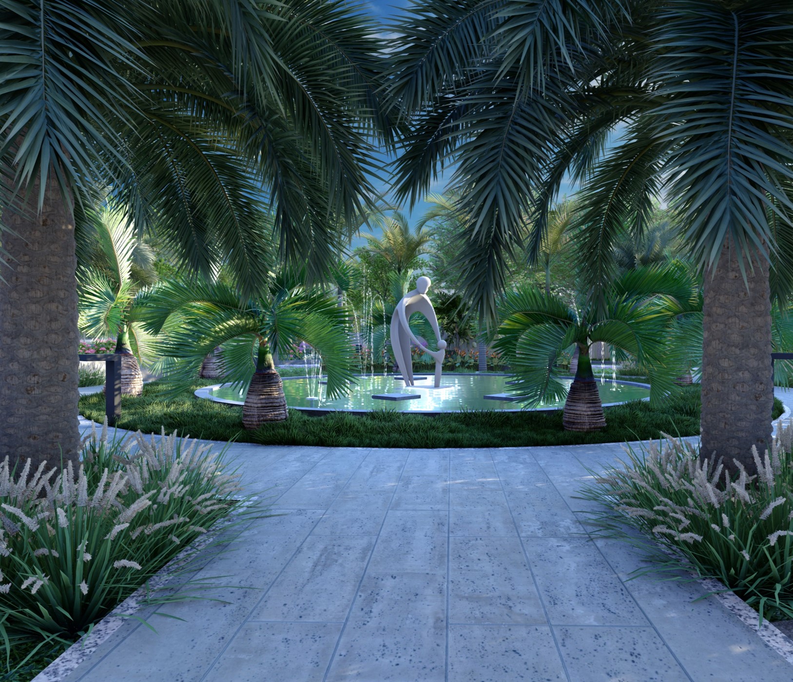 The picturesque landscape with sprawling lush green lawns, tall palm trees, and colorful flower shrubs all together allows the residents to experience the beauty of nature from within the apartments.
